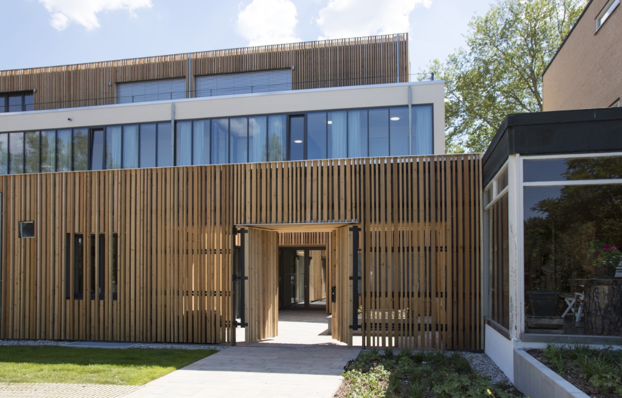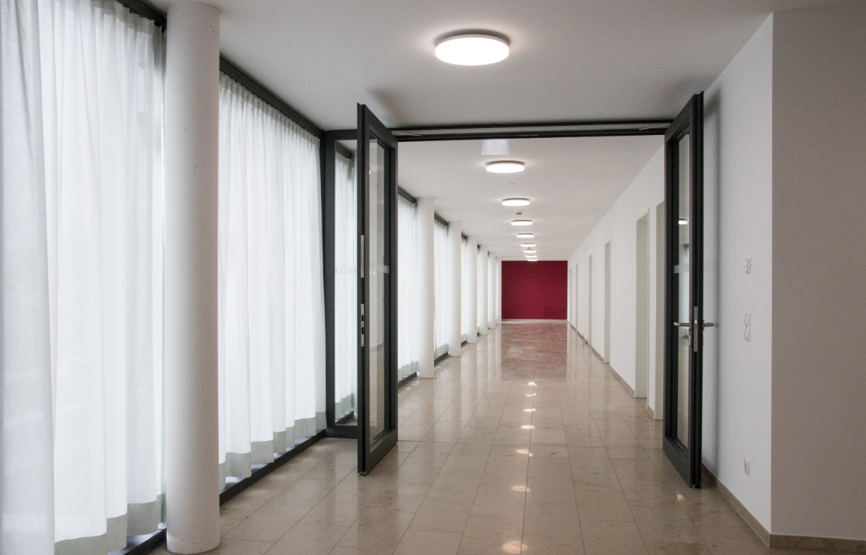 Das neue Schwesternheim befindet sich in direkter Nachbarschaft zu Schloss Nymphenburg und dem Botanischen Garten. 1962-1964 entstand das denkmalgeschützte Ensemble aus der Feder von Josef Wiedemann. Es besteht aus der Kirche zur „Heiligen Dreifaltigkeit“ und einem Kloster aus Wohngebäuden die entlang eines gläsernen Ganges kammartig aufgefädelt sind. Die notwendige Erweiterung mit einem Wohnheim nimmt diese Struktur auf und fügt dem Kamm einen weiteren Zinken hinzu. Der Neubau beherbergt 21 Appartements, Speisesaal, Hauskapelle, Verwaltungs- und Gemeinschaftsbereiche. Mit modernen Materialien führt es Wiedemanns Architekturgedanken fort. Im räumlichen Zusammenspiel mit der stadtteilprägenden Kirche entsteht so ein Innenhof, der sich zum Straßenraum hin in wechselnden Schichten öffnet und die Anordnungen historischer Kreuzgänge nachbildet.