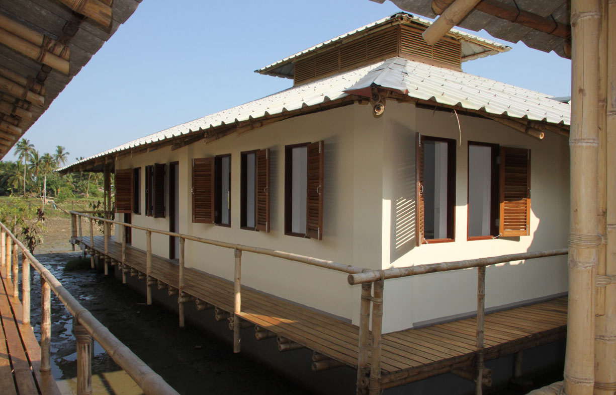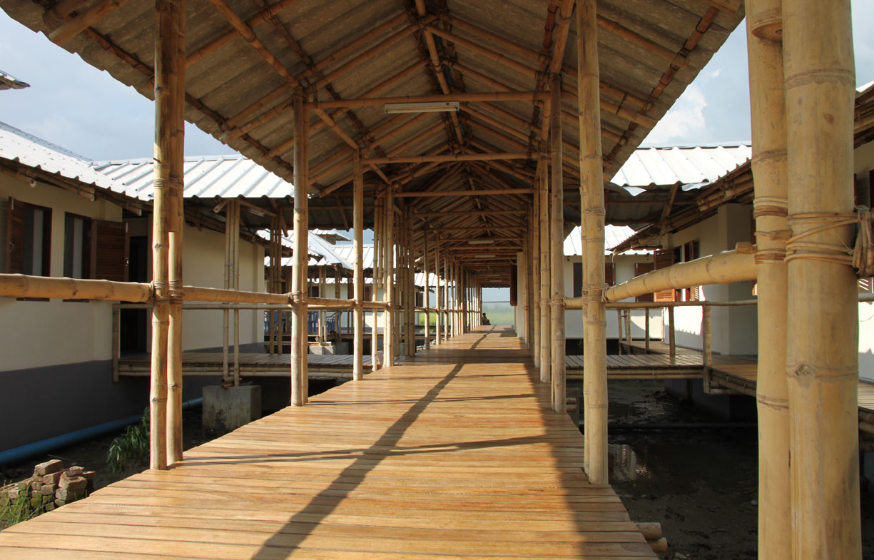 Das Erdgeschoss ist massiv (Lehm-Ziegelbauweise) mit sogenannten “Durchflutungs-öffnungen” erstellt, das Obergeschoss in “Leichtbauweise” aus einer mit Borsalz imprägnierten Bambus-Konstruktion. Dieses Obergeschoss soll auch während eines Katastrophenfalles als Schutzraum für die umliegende Bevölkerung dienen. Mit dieser Schule wurden nicht nur 10 neue Schulräume für Kinder geschaffen, sondern auch eine Bauart entwickelt, welche ausschließlich die örtlichen Rohstoffe Ziegel, Lehm und Bambus verwendet.